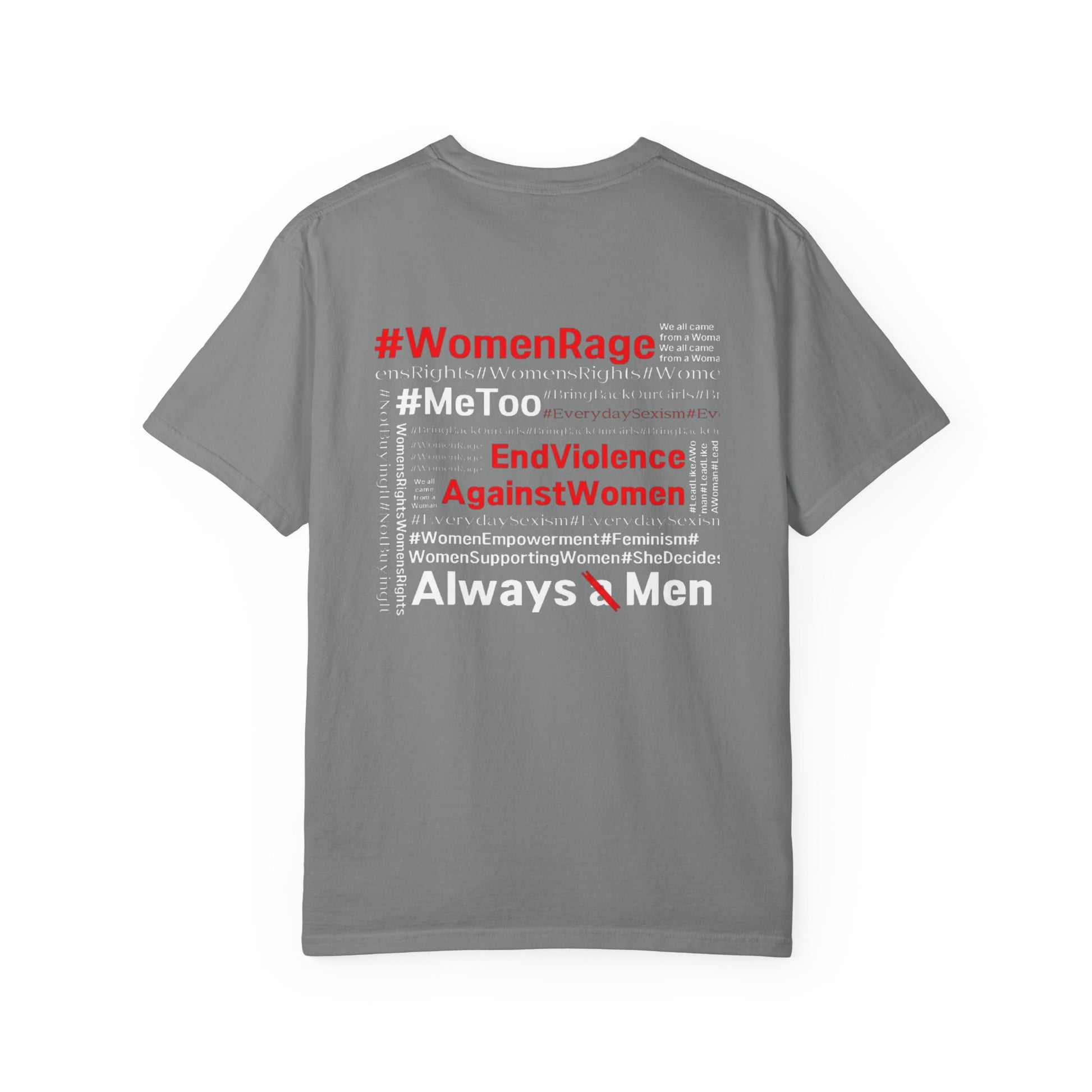 This isn't just a heavyweight tee; it’s a wearable archive of courage. Featuring a bold word-cloud design, this shirt anchors the hashtags—from #MeToo to #WomenRage—that have defined a generation of resistance.